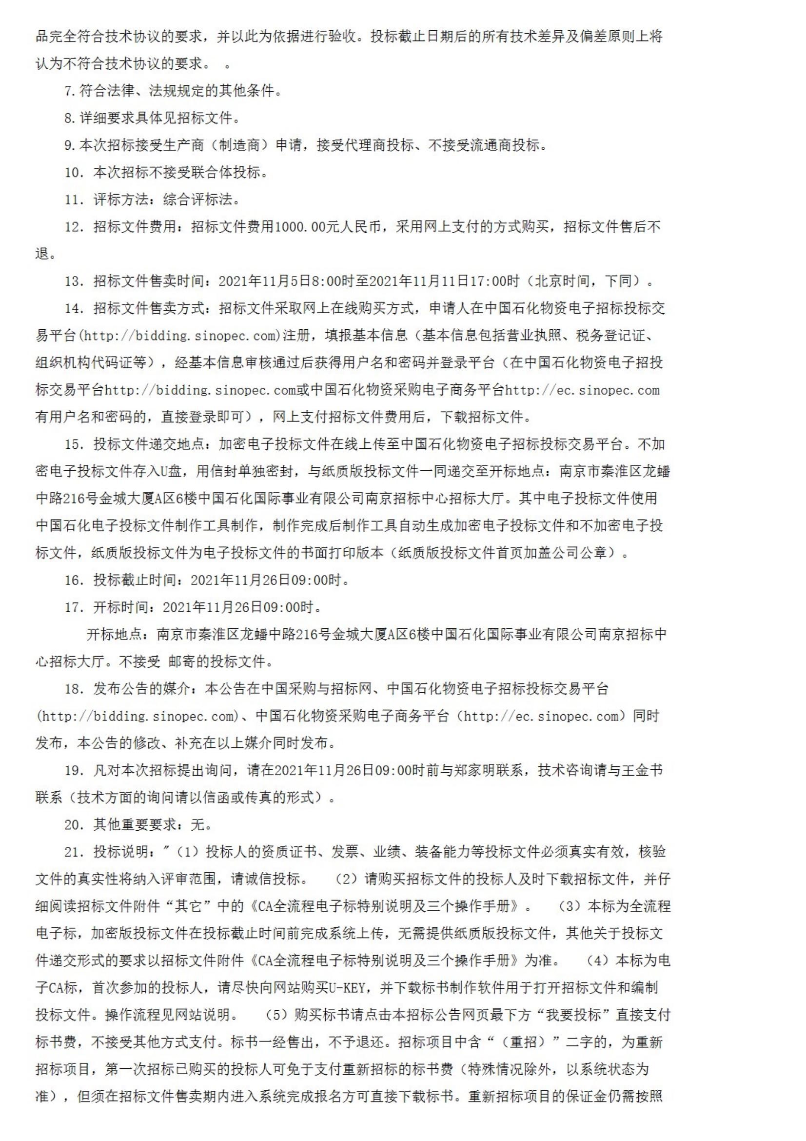 中國石化物資裝備部(國際事業公司)揚子石化2022年大修設備更新計劃離心式壓縮機B200~300m3/min 入口0MPa 出口0.95MPa/空氣招標公告
