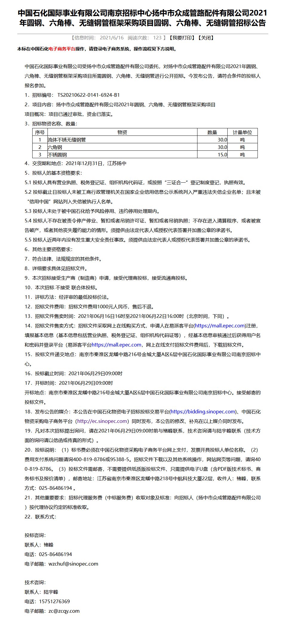 本公告在中國采購與招標(biāo)網(wǎng)、中國石化物資電子招標(biāo)投標(biāo)交易平臺(http://bidding.sinopec.com)、中國石化物資采購電子商務(wù)平臺(http://ec.sinopec.com)同時發(fā)布,本公告的修改、補(bǔ)充在以上媒介同時發(fā)布。