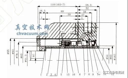 1-軸封圈;5-動環(huán)密封圈;6-金屬波紋管;7-靜環(huán);11-水封;12-恰簧;16-動環(huán)輔助密封圈