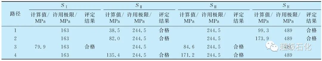表4 各路徑應力強度及評定結果